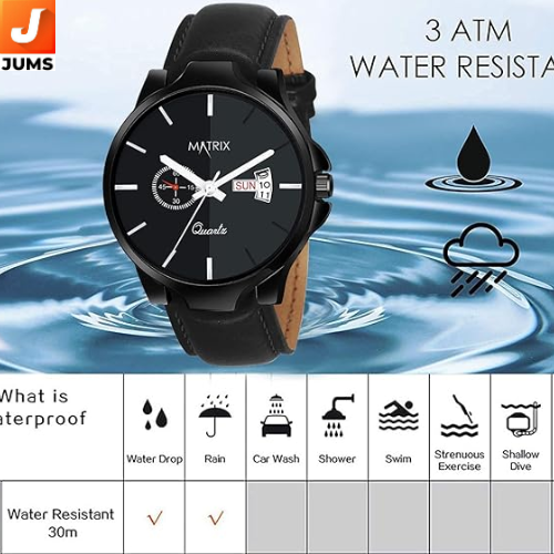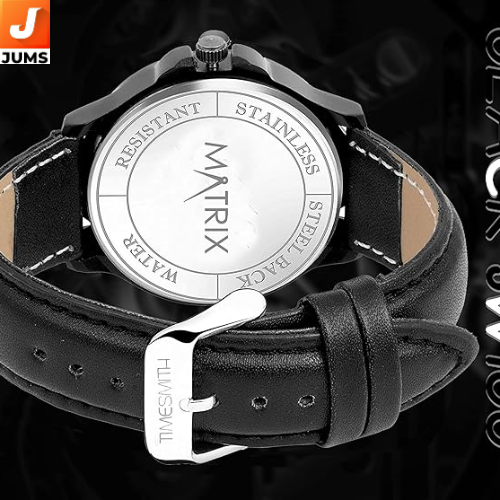 The Matrix Black Swiss Analog Wrist Watch offers a classic analog display with a black round dial that’s easy to read and styled for everyday wear. It typically features reliable quartz movement for accurate timekeeping and may include a day & date function on the dial, depending on the specific model configuration. The watch is built with a durable case and strap — often silicone or leather depending on the variant — and a secure buckle closure for a comfortable fit.