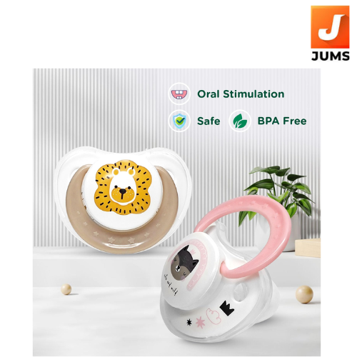 Mee Mee Pacifier Ultra Light Soft Silicone Nipple | BPA Free | Oral stimulatory | Teether | Air Flow Shield Pacifier for Babies with Cute Print Pack of 2 (Pink & Peach)