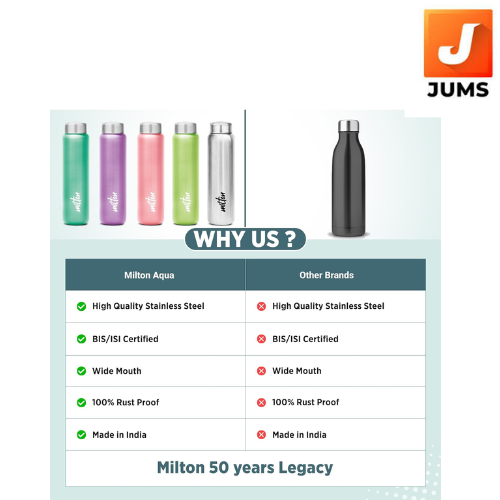 #1 WATER BOTTLES BRAND : Join the club, choose the premium brand and elevate your style with Milton. 50 YEARS OF INDIAN INNOVATION : Milton Water Bottle 1 litre features a sleek, single-walled design for everyday convenience.