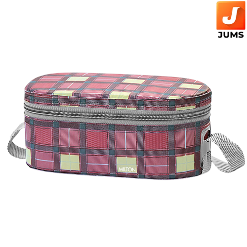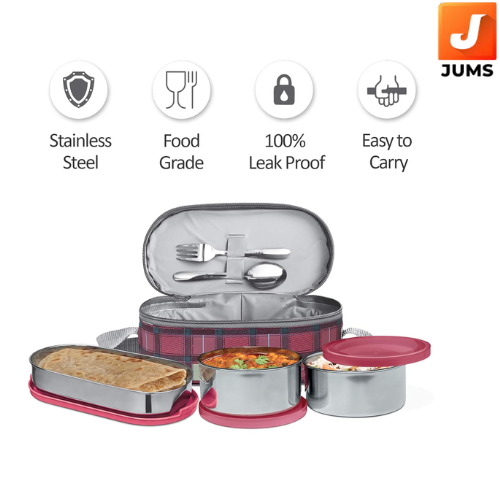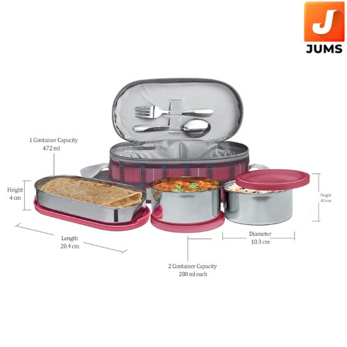 Colour: Maroon; Material: Plastic; Package Content: 1 - Piece Corporate Lunch Box (2 Round Container, 280 ml & 1 Oval Container, 472 ml)
