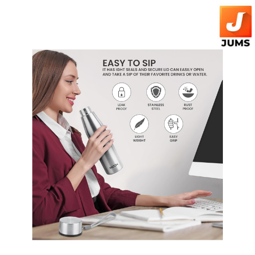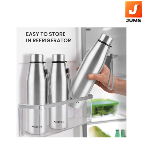 The Milton Drift Bottles are made from durable, rust-proof stainless steel, it features an elegant, symmetrical design that's both beautiful and practical. The bottles comes with a convenient strap, making it perfect for fridge storage or on-the-go use. Choose from 750ml or 1000ml to find your ideal size. Single Wall Steel Water Bottle with inside outside stainless steel, which is odor free and 100% food grade. This Bottle is unique in shape, it has leak proof technology, which make this product easy to carry at school, travelling and work. This bottle is provided with an ergonimic lid and is a combination of comfort, safety and style. This bottle is easy to clean and maintain, Use a mild detergent or dish wash liquid and clean on the inside with a bottle brush.