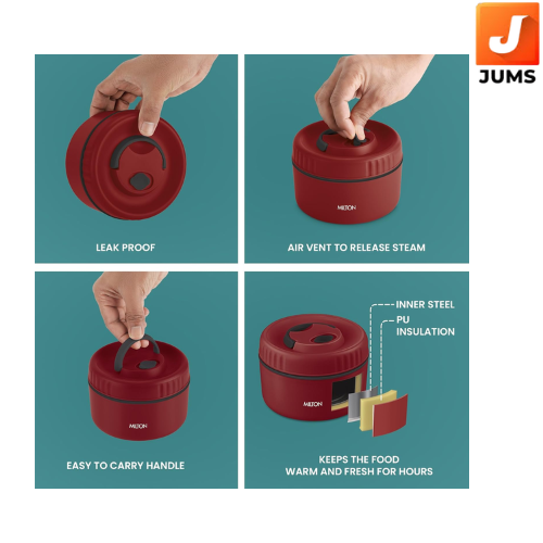 Leak Proof with Air Vent I Lunch Box for Office Use, School I Maroon