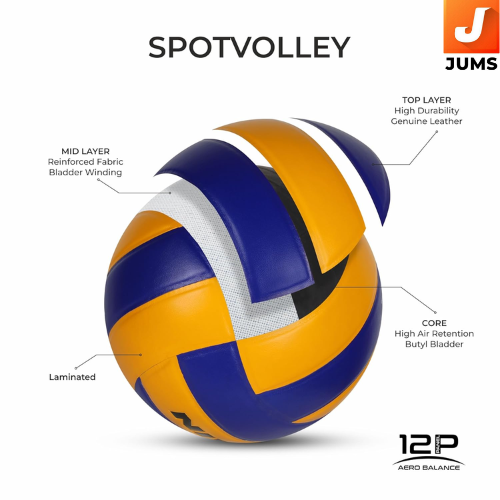 The Nivia Spotvolley Volleyball Size 4 is a premium match-level volleyball crafted for players who want a professional-grade ball that performs reliably in both practice and competitive environments. It features a 12-panel laminated design that ensures excellent shape retention and a stable flight trajectory, helping players execute accurate serves, spikes, and passes during play. The genuine leather pasted outer gives the ball a firm yet comfortable feel while adding durability to withstand the rigours of intense indoor and outdoor usage.