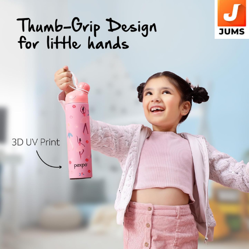 Tri-Ply Vacuum Technology (TPVT): Thicker aluminum insulation between steel layers achieves superior temperature regulation, outperforming standard copper coatings; our R&D indicates that it offers greater durability than thin copper plating. UV Printed Design: Pexpo Pico water bottle gives vibrant UV-printed characters like Rockets, Unicorns, Mermaid, and Monkeys, to bring a smile to kids' and the young at heart, cute and useful option for return gifts