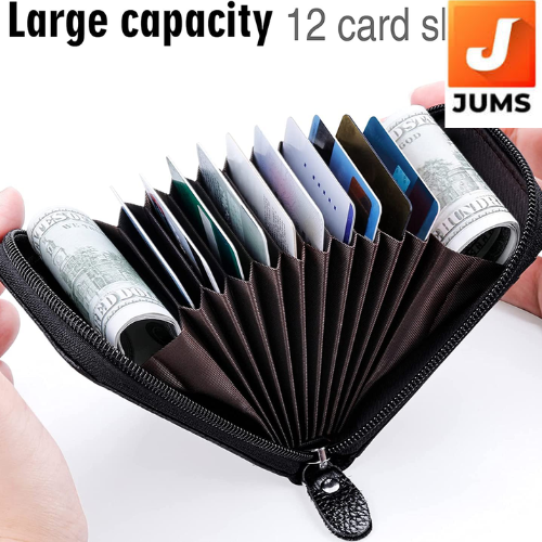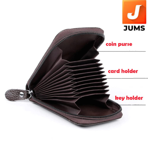 Premium Leather Unisex Slim Zipper Business/Credit Card Case Holder With Clear Photo Slot, Security Travel Wallet (Pop78-Brown-New)
