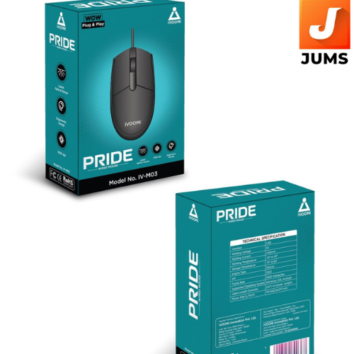 iVOOMi Pride wired Mouse IV-M03 |1000 DPI | Latest Optical sensor | Durable cable, plug & play | Ergonomic design | Windows |1 year Warranty
