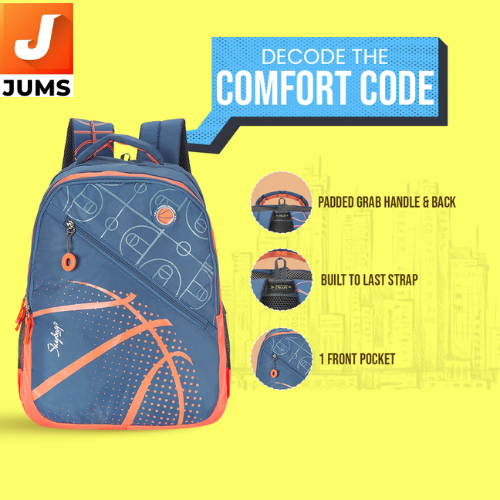 Vibrant Blue & Orange Design: Eye‑catching color combination that stands out. Spacious Main Compartment: Large interior space for books, notebooks, folders, and essentials. Front Organizer Pocket: Handy pocket for pens, pencils, keys, and small items. Durable Construction: Made from sturdy materials to handle daily school use.