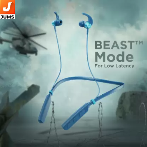 Wireless Bluetooth Neckband design for comfortable all-day wear and hands-free convenience. Up to ~20 hours playback on a single full charge for extended music, calls and entertainment sessions. ASAP™ Charge support — quick charging gives several hours of playback with only a short charge. BEAST™ Mode (Low Latency) reduces audio delay for smoother gaming and video experience. ENx™ Technology enhances call quality by reducing background noise for clearer voice pickup.