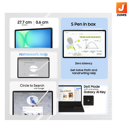 Perfect Balance of Power and Play with Intelligent Galaxy Features: Whether you're working on a personal project or a big idea, the Galaxy Tab S10 FE Series is your ultimate companion. Enjoy your favorite contents anytime, anywhere with stunning visuals and immersive sound. And with the intelligent features, you can bring your creative ideas to life.