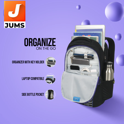 Durable polyester construction with a zipper closure for secure storage. Unisex style suitable for students and everyday use. Capacity: Approx 22 L, compact yet practical for daily carry.Laptop‑compatible compartment designed to hold a laptop or tablet safely. Two main compartments help organize essentials. Side pockets: 2 side pockets for water bottles or quick access items.Number of zips: 3 for easy access. Internal organizer panel to help keep small accessories in place.