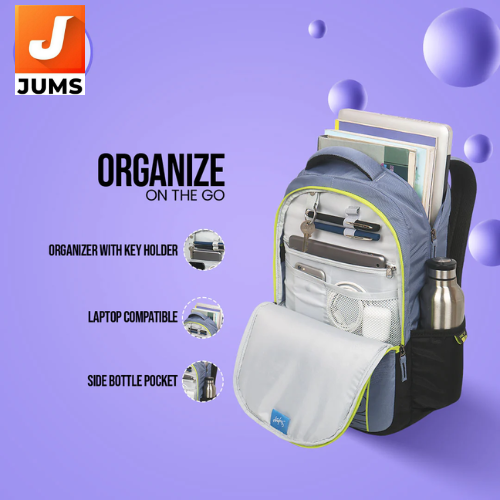 Material: Durable polyester fabric with a zip closure. Capacity: 22 L, compact and lightweight for daily use. Unisex design: Suitable for students and commuters alike.Laptop compatible: Has a section that can safely hold a laptop or tablet. Compartments: 2 main compartments plus a front pocket for easy organization of small items. Organiser section: Includes an internal organiser panel with a keychain holder.Side bottle holders: Two side pockets for water bottles or quick‑access items. Built‑to‑last shoulder straps: Padded straps for comfortable daily carry. Lightweight: Approx. weight around 460 g makes it easy to carry.