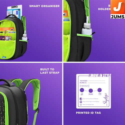 Brand: Skybags Model: Klan Plus V2 Capacity: 38 liters Color: Black (classic and versatile) Material: High-quality polyester fabric for durability Compartments: 3 spacious compartments for organized storage Front Pocket: 1 front pocket for quick access to small items Secret Pocket: Hidden compartment for valuables or personal items Side Pockets: 2 side bottle pockets for easy access to drinks Raincover: Includes a rain cover to protect contents during rain Shoulder Straps: Padded, adjustable shoulder straps for comfort Ideal for: School, college, travel, and daily use Design: Stylish and practical design suitable for both boys and girls Durability: Built to last with reinforced stitching for long-term use Weight: Lightweight design, easy to carry