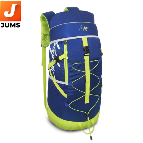 The Skybags Mount Rucksack 45L in blue is a large and versatile backpack, designed specifically for adventure lovers who need a durable and spacious bag for their outdoor activities. With a 45-liter capacity, it offers generous storage space for all your hiking, trekking, or camping gear. This rucksack is perfect for long travels or multi-day trips, providing plenty of room for essentials such as clothes, food, a sleeping bag, and even small outdoor equipment. Crafted from high-quality, water-resistant fabric (typically polyester or nylon), the Skybags Mount Rucksack ensures your belongings stay protected from light rain or splashes. The main compartment is large and easily accessible, while the front and side pockets help you keep smaller items organized and easy to reach, like a map, flashlight, or snacks. The side mesh pockets are convenient for carrying water bottles or other quick-access items.