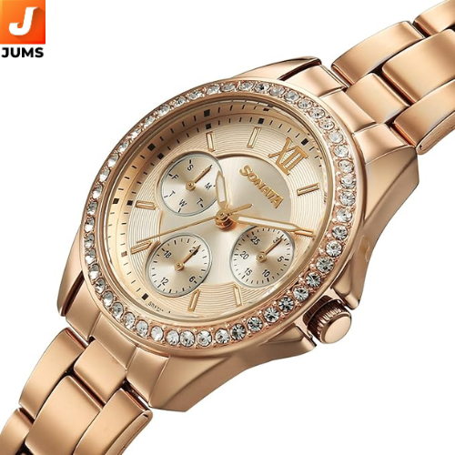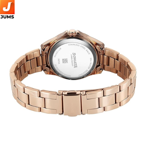 The Sonata Festive 2.0 women’s watch offers a stylish pink round dial set in a metal case with a stainless steel strap for a classic yet elegant look. Powered by a quartz movement, it delivers reliable and accurate timekeeping in a traditional analog format. The watch features a round face with mineral glass protection and a secure clasp closure on the bracelet, making it suitable for daily wear and casual occasions.