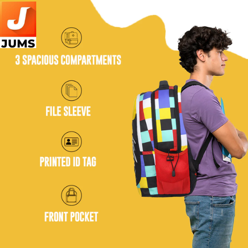 Spacious Main Compartment: Ample room to store textbooks, notebooks, folders, and essentials. Front Organizer Pocket: Handy front pocket for stationery and smaller items. Durable Construction: Made with strong materials to withstand everyday school use. Comfortable Padded Straps: Adjustable and cushioned shoulder straps for all‑day comfort.