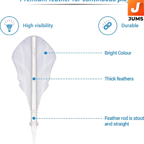 | Material & Build | . Made from high‑quality goose feathers for authentic feel and flight Strong cork base for consistent bounce and impact response |