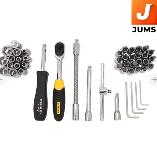 STMT72794-8 1.5-inch 46-piece Hex Socket Set is a comprehensive hand tool kit designed to tackle a wide range of fastening and loosening tasks in automotive, industrial, and home workshop applications. It includes a broad selection of metric and imperial hex sockets, extensions, a ratchet handle, and accessories all stored in a compact, organized carrying case for easy access and transport.