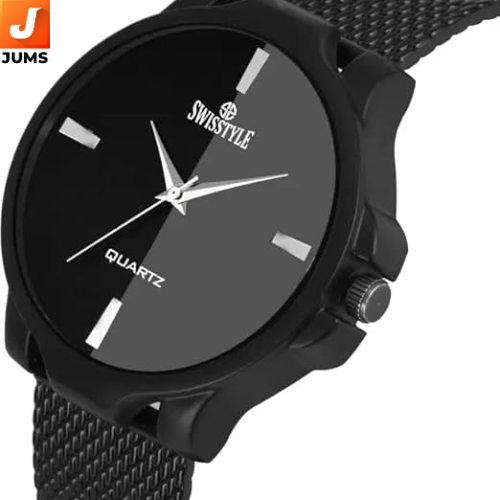 The SWISSTYLE Blue Dial Analog Watch for Men is a striking timepiece that combines modern design with reliable functionality. The most prominent feature of this watch is its vibrant blue dial, which offers a clean, eye-catching look. The silver-tone hour markers and hands contrast beautifully with the blue background, making it easy to read the time in any lighting. The round stainless steel case adds a sleek and polished touch, offering durability and elegance. The stainless steel or genuine leather strap (depending on the specific model) complements the dial perfectly, ensuring comfort and style. The strap is designed to fit securely on the wrist, providing both long-lasting wearability and a premium feel.
