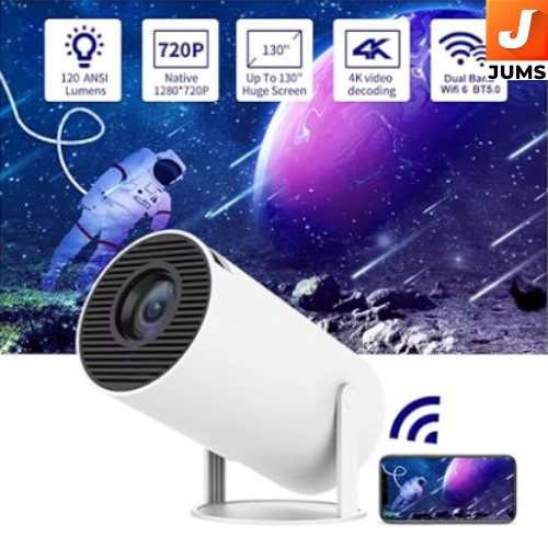 The Technoview Smart LED Projector is a budget home entertainment projector engineered to deliver simple, smart, and immersive viewing experiences without needing extra streaming devices. This compact LED projector combines native 720p HD resolution, built‑in streaming apps, and a rotatable design to make watching movies, TV shows, sports, and more easy — even on larger screens