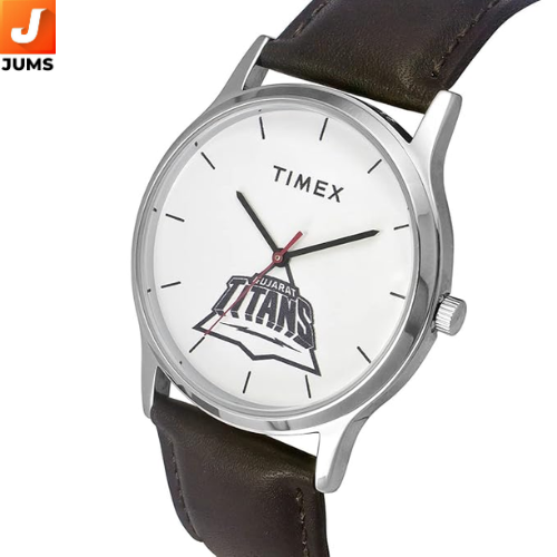 Analog 3‑hands quartz movement: Traditional hour, minute, and second hands with precise and reliable timekeeping. White dial with coloured accents: Clean and easy‑to‑read dial with subtle design details; ideal for both casual and everyday looks. Round 39 mm case: Classic size that fits comfortably on most wrists.Strap material: Genuine leather strap with a tang/buckle closure for a secure and comfortable fit. Dial protection: Mineral or similar glass to help resist everyday scratches (common in Timex watches, though exact spec varies). Coloured Quartz Design: Adds a sporty look and team‑themed appeal tied to the Gujarat Titans branding.