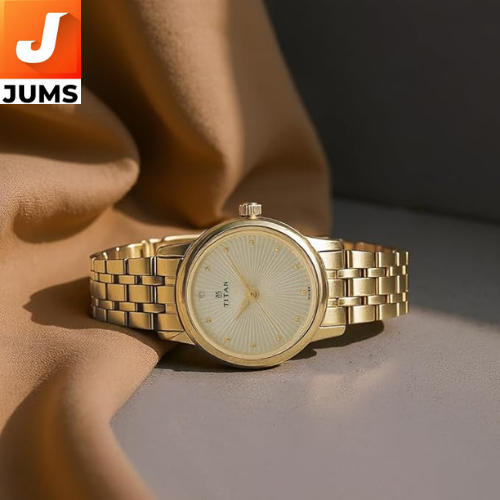 Brand: Titan Model: Karishma Type: Quartz Analog Watch Gender: Women Dial: Champagne-colored, round shape Strap: Golden stainless steel, elegant and durable Movement: Quartz movement for precise timekeeping Water Resistance: Typically 30 meters (splash-resistant) Case Material: Stainless steel, providing durability and comfort Dial Size: Medium-sized, ideal for most wrist sizes Design: Sophisticated, classic, and feminine Occasion: Perfect for formal events, evening wear, or gifting Style: Elegant, timeless, and versatile