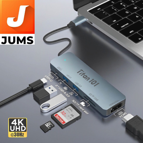 iVOOMi TITAN101 7 in 1 Type-C HDMI+USB3.0*2+ Type-C+SD/TF works with Android, Windows, Linux, High Quality Visual Transmission Light Weight, 1-year warranty