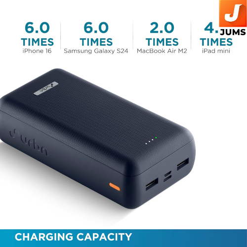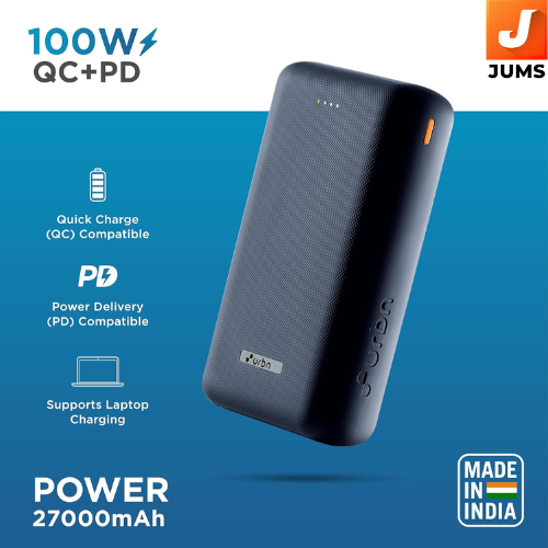 The URBN 27000 mAh 100W Super Fast Charging Compact Power Bank (Blue) is a high‑capacity portable charger designed to power your devices quickly and reliably — from smartphones and tablets to laptops — while on the go. It’s Made in India and comes with convenient charging features suited for modern USB‑C‑powered gadgets.