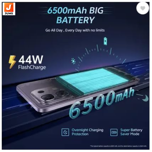 About this item 50 MP + 2 MP Rear Camera | 8 MP Selfie Camera 17.06 cm (6.72" inch) Memory & SIM: 8GB RAM | 128GB internal memory 44W fast charging with 6500 mAh battery
