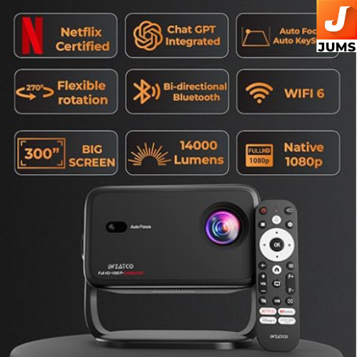 Operating System: Android-based certified smart OS with built-in OTT apps (Netflix, Prime Video, YouTube, etc.). LX INDIA Netflix Certified: Official support ensures smoother Netflix streaming without workarounds. Wzatco Projectors Voice Assistant & ChatGPT Integration: Includes voice control features and integrated ChatGPT for smart, hands-free interaction.
