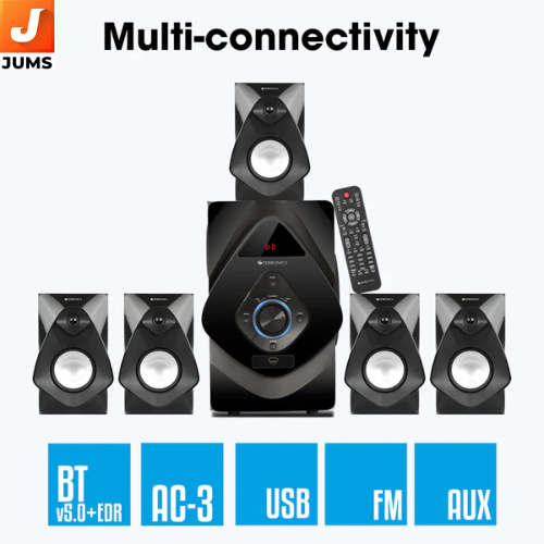 5.1 Channel Speaker Wireless BT/USB/FM/AUX/AC-3 LED display 16.51cm subwoofer Remote control Wall Mountable Dual Microphone input Jack