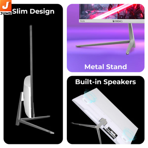 The ZEBRONICS EA224 (165 Hz) is a 24″ Full HD (1920×1080) IPS gaming monitor offering smooth visuals with its 165 Hz refresh rate, making gameplay and fast‑moving video look fluid and responsive. It features an ultra‑slim bezel and slim design for a clean, modern setup, an IPS panel with wide viewing angles, and support for 16.7 million colours for vibrant visuals. The monitor includes HDMI and DisplayPort inputs, built‑in speakers, and a headphone jack, providing flexible connectivity and basic audio without external speakers
