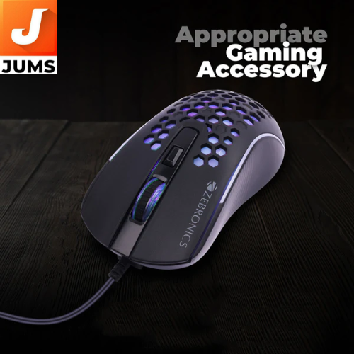 The Zebronics Flash is a wired ergonomic gaming mouse designed for budget‑friendly gamers and everyday users. It connects via a USB cable (1.5 m length) for reliable plug‑and‑play use and features adjustable DPI levels (1200/1800/2400/3600) with a DPI switch for on‑the‑fly sensitivity changes. The mouse includes LED lighting for a gaming look, high precision optical tracking, and four buttons for basic control. Its ergonomic shape and optical sensor make it comfortable and responsive for both casual computing and light gaming sessions.