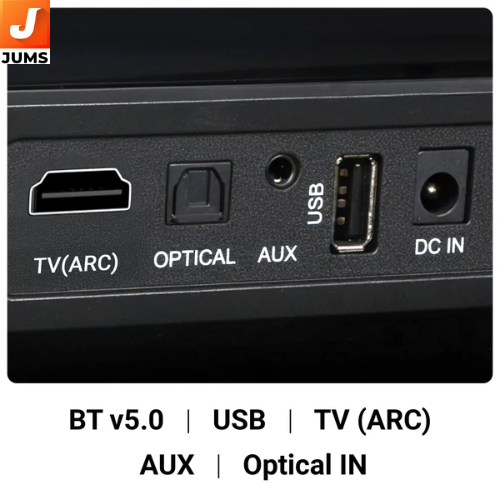| Wired Options: | HDMI (ARC), Optical IN, USB, AUX |