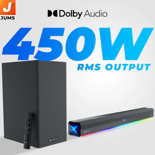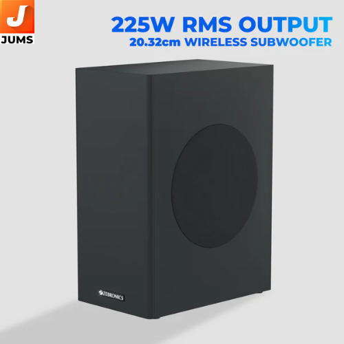 Product Name: Zeb Juke Bar 900 Type: Soundbar with subwoofer Audio Quality: Rich stereo sound with deep bass and clear treble Connectivity: Bluetooth, HDMI (ARC), AUX, USB, and Optical input Power Output: 120W peak power for loud and clear sound Subwoofer: Wired subwoofer for enhanced bass performance Design: Slim, sleek design for modern home setups Remote Control: Comes with a remote for easy control of audio settings Compatibility: Compatible with TVs, smartphones, laptops, gaming consoles, and more Additional Features: Built-in equalizer presets, movie/music modes, and easy volume control Price Range: Affordable, providing value for money