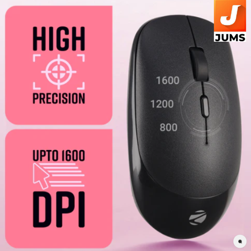 The Zebronics Leopard is an affordable wireless optical mouse designed for everyday computing and basic productivity tasks. It uses a 2.4 GHz USB nano receiver for reliable plug‑and‑play connectivity with laptops, desktops, and other compatible devices, and offers adjustable DPI sensitivity up to 1600 DPI for smooth and responsive cursor control. With four‑button operation (including left/right click, scroll wheel, and dedicated DPI switch), silent click technology for quieter use, a comfortable ambidextrous ergonomic design, and power‑saving mode to extend battery life, the Leopard is a simple, lightweight option for general use at a budget‑friendly price point.