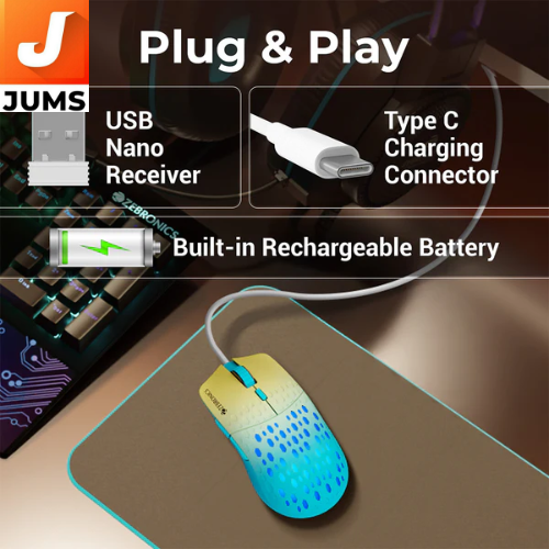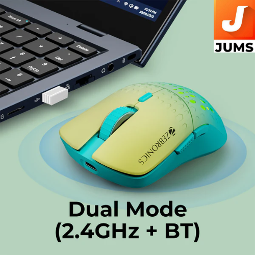 The Zebronics Marine is a versatile wireless mouse that blends performance, comfort, and style for both everyday computing and light gaming. It offers dual‑mode connectivity via 2.4 GHz wireless and Bluetooth, with a compact nano receiver that can be stored inside the mouse, making setup and portability easy