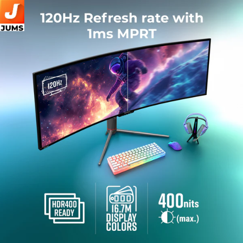 The ZEB-N49A is a flagship 49-inch curved ultrawide gaming and productivity monitor from Zebronics, designed for immersive gaming, multitasking, and creative work. It combines a wide display area with high performance and rich connectivity