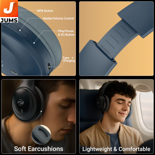 The Zebronics Zeb Paradise Neo is a feature-packed Bluetooth wireless over-ear headphone designed for comfortable all-day listening with clear audio and versatile connectivity. It sports 40 mm dynamic drivers for balanced sound, Bluetooth 5.4 for stable wireless pairing, and up to ~50 hours of battery life with rapid charging that gives around 7 hours of playtime from just a 10-minute charge.
