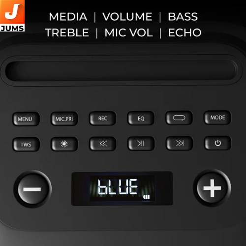 The Zebronics Party Fyre 90 is a feature‑rich 60 W RMS portable Bluetooth party speaker designed to deliver powerful sound and lively entertainment for gatherings, karaoke sessions, and everyday music playback. It produces rich audio through dual 16.51 cm full‑range drivers and supports multiple playback modes including Bluetooth v5.4, USB, microSD (mSD), FM radio, and AUX, giving you flexibility in how you play your music