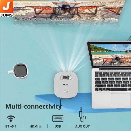 Home Theater Projectors for Movies, TV & Gaming etc.. Projector comes with AUX OUT, USB , HDMI IN Built in Speaker Wide Compatibility Ceiling Mountable Carry Strap Remote Control Electronic Focus (via remote) Miracast Dual band Connectivity (2.4GHz & 5GHz) FHD 1080p (Native) 30,000h lifelong LED lamp APP Support Quad Core Processor Dolby Audio