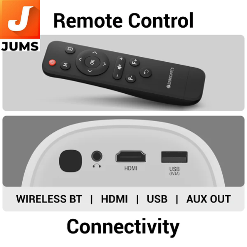 The Zebronics PIXAPLAY 53 is a feature-packed smart LED vertical projector designed to upgrade your home entertainment experience with movies, TV shows, and casual gaming. It offers a native HD (1280×720) resolution with support for up to 1080p Full HD playback and projects images up to approximately 305 cm (120″) wide, making it ideal for spacious screen viewing in living rooms or media rooms.