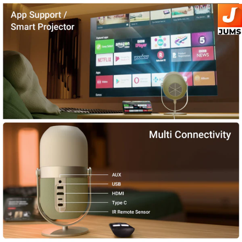 🎬 Smart LED Projector for Home Entertainment: Ideal for watching movies, TV shows, gaming, and presentations with immersive visuals. 🖥️ HD Native Output: Projects in 1280 × 720 HD with support up to 1920 × 1080 Full HD for sharper viewing. 💡 Bright Projection: Delivers about 3800 lumens brightness for vivid picture quality. 📏 Large Screen Capability: Can project screens up to ~356 cm (≈140 inches) wide, transforming any room into a cinema-like setup.