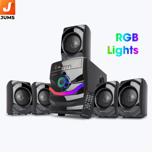 The Zebronics Rainbow 100 is a 5.1 channel multimedia speaker system designed to bring immersive audio to your home setup. With a total output of 80 W, this system combines a powerful 30 W subwoofer and five 10 W satellite speakers to deliver rich sound with deep bass and clear mid-high frequencies. The subwoofer’s 10.16 cm driver ensures that low-end sound remains punchy, making this speaker suitable for music, movies, and casual gaming. One of the standout features of the Rainbow 100 is its multiple connectivity options. You can stream music wirelessly through Bluetooth 5.0, plug in via AUX, or play audio directly from a USB drive. In addition, the built-in FM radio lets you tune into local stations without connecting any devices. This makes the Rainbow 100 very flexible for different audio needs.
