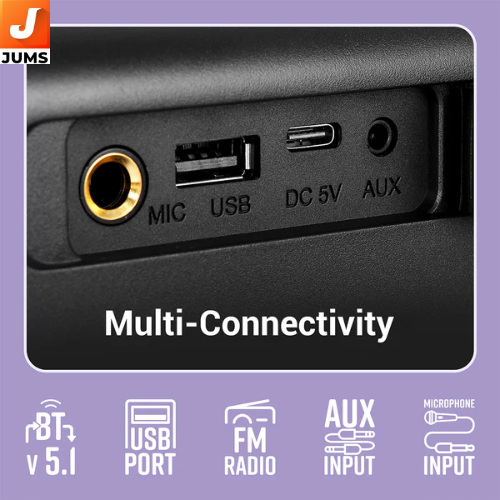 | Connectivity: | Bluetooth v5.1, USB, AUX, FM Radio |