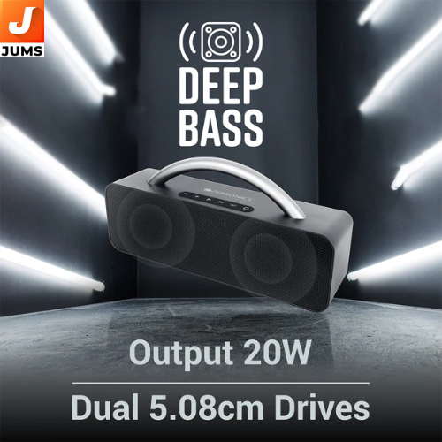 The Zebronics Rocket 200 is a compact, 20 W (10 W + 10 W) portable wireless speaker designed for everyday music listening, casual entertainment, and small gatherings. It supports Bluetooth v5.1 for seamless wireless audio streaming from phones and tablets, and also lets you play music via USB, FM radio, or AUX input — giving you flexible playback options. The speaker uses dual 5.08 cm drivers and a passive radiator to deliver balanced sound with emphasis on deep bass, making tunes more lively and immersive