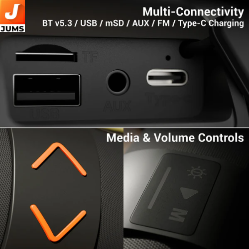 | Wired Options: | USB, microSD (mSD), AUX, FM radio |