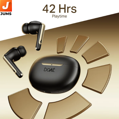 The boAt Airdopes 141 Elite ANC are a pair of premium truly wireless earbuds designed to deliver an immersive audio experience with high-quality sound, long battery life, and advanced noise-canceling features. These earbuds come with Bluetooth v5.2, offering strong and reliable connectivity for uninterrupted music, calls, and media streaming. With 10mm drivers, the Airdopes 141 Elite ANC provide boAt's signature sound, with deep bass and clear highs, making them perfect for a variety of audio experiences. One of the standout features of these earbuds is the Active Noise Cancellation (ANC), which reduces surrounding noise by up to 25dB, helping you focus on your music or calls in noisy environments. The earbuds also come equipped with Environmental Noise Cancellation (ENC) for calls, ensuring your voice is clear and free from background noise even in crowded spaces.