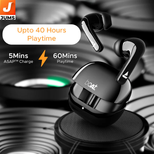 The boAt Airdopes 155 are a pair of affordable, truly wireless earbuds designed for music lovers and on-the-go users looking for great sound and reliable performance. With Bluetooth v5.1, these earbuds offer a stable connection, ensuring minimal dropouts for music, calls, or media. The 10mm drivers produce a punchy, bass-heavy sound signature that boAt is known for, making them suitable for bass lovers and fans of immersive audio. The earbuds provide up to 6 hours of playtime per charge, and when paired with the charging case, they deliver a total of 30 hours of playback, making them perfect for long listening sessions. The Type-C charging port ensures quick and efficient charging, with a full charge taking about 1.5 hours. Additionally, the Fast Charging feature allows users to get 90 minutes of playtime with just a 10-minute charge, which is highly convenient for busy users.