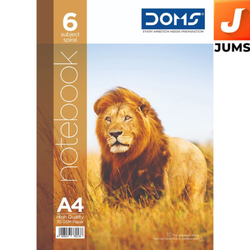 Doms Wildlife Animals Series 6 Subject Spiral Notebook | A4, 70 GSM, Single Line, 300 Pages | 29.7 x 21 CM | The Book is Sturdy & Long Lasting | Pack Of 1 | Color And Design May Vary