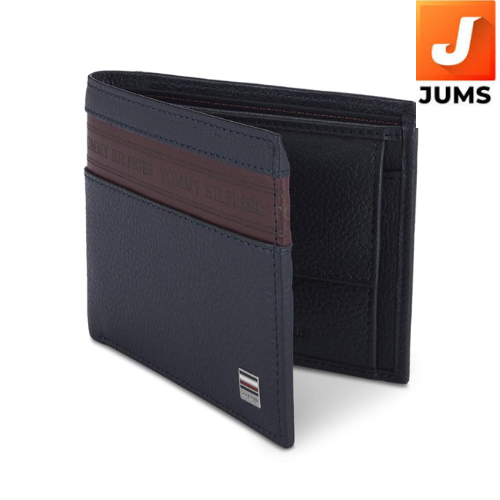 Hilfiger Men's Global Coin Wallet Emery - Navy+Wine | 1 Coin Pocket | 2 Compartments | 4 Cards Slots | Stylish Men's Leather Wallet